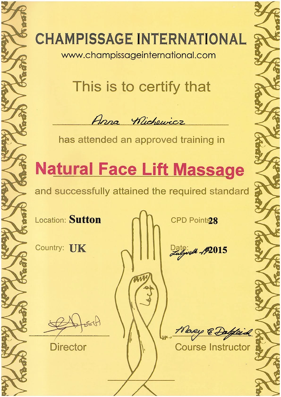 jeszcze będąc w Wielkiej Brytanii, ukończyłam kurs Naturalnego faceliftu twarzy,